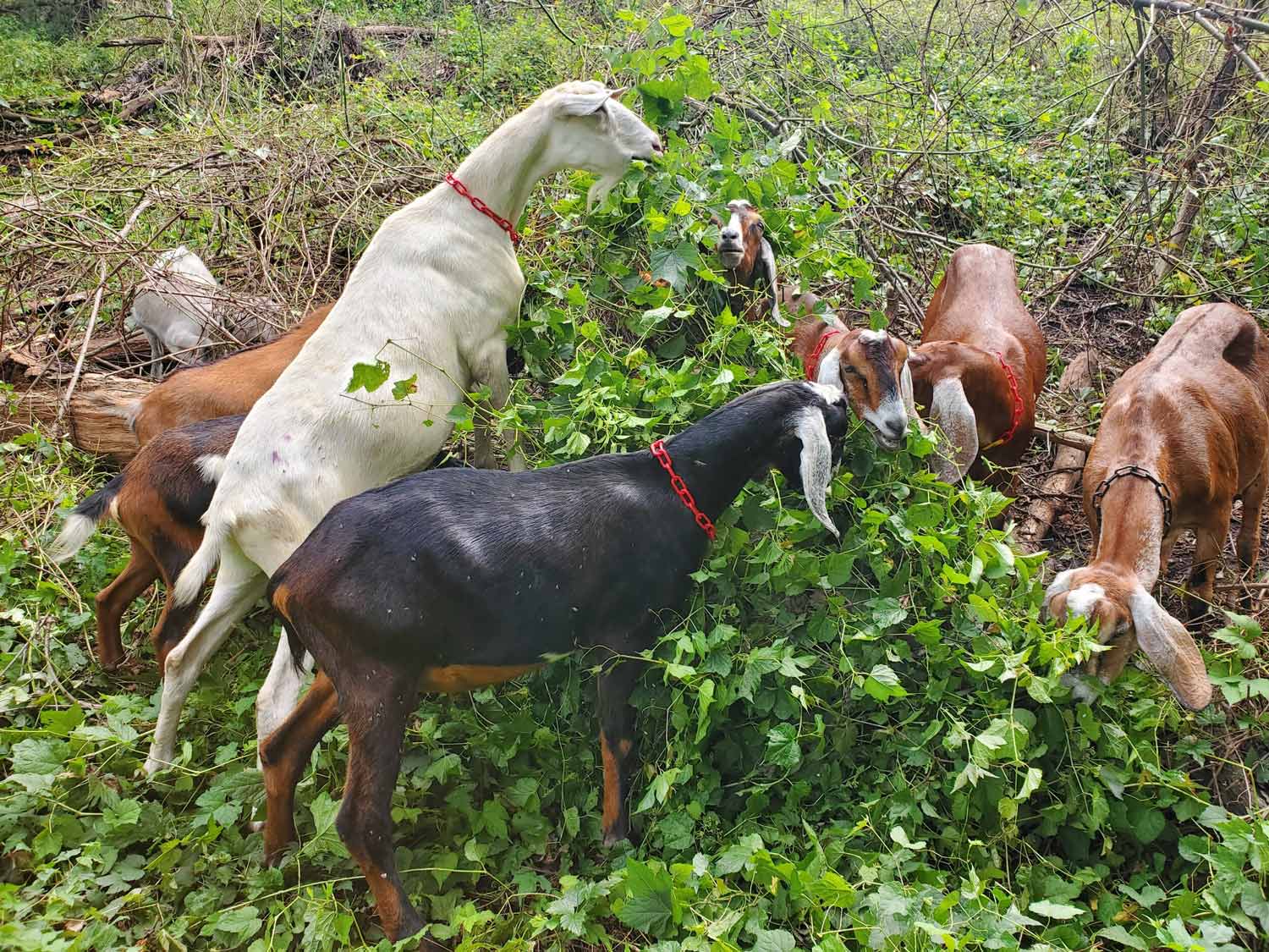 The goats easily maneuver difficult terrain, so they’re perfect for managing the invasive plant problem.
