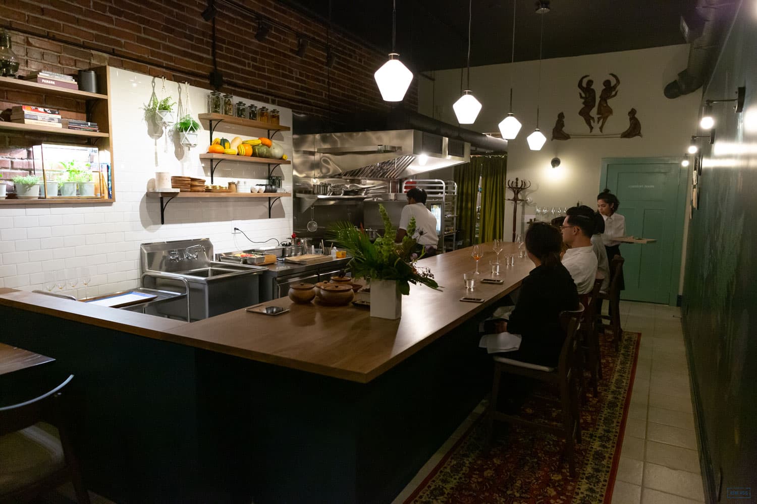 Aaron: There’s an open kitchen, so you get to see everything that happens. We only seat eight at a time so every guest has a direct connection to us. We wanted this to feel like you’re at our parents’ house or our house. The heart of our culture has to do with sustaining that hospitality and the idea of something being cooked out of the home. We chose that format so we could sink our teeth into dishes that we know and dishes that might be more obscure.