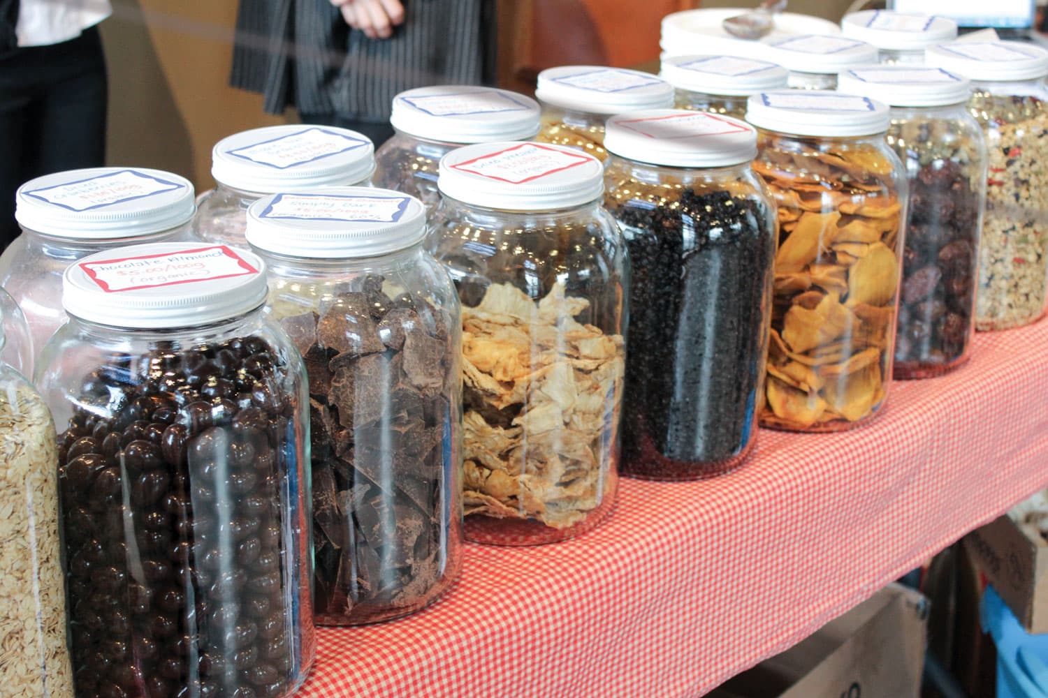 Varied containers of dry goods await zero-waste shoppers at a pop-up prior to the opening of their brick-and-mortar store.